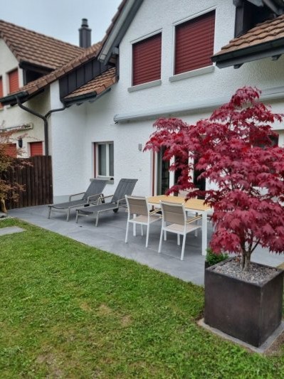 Der Garten verfügt nun über zwei großzügige Sitzbereiche: