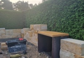 Die neu angelegten Ebenen schaffen spannende Perspektiven und verbinden Funktionalität mit Ästhetik. Hochwertige Natursteinmauern fassen die Flächen ein und verleihen dem Garten Tiefe, Stabilität und eine zeitlose Ausstrahlung.